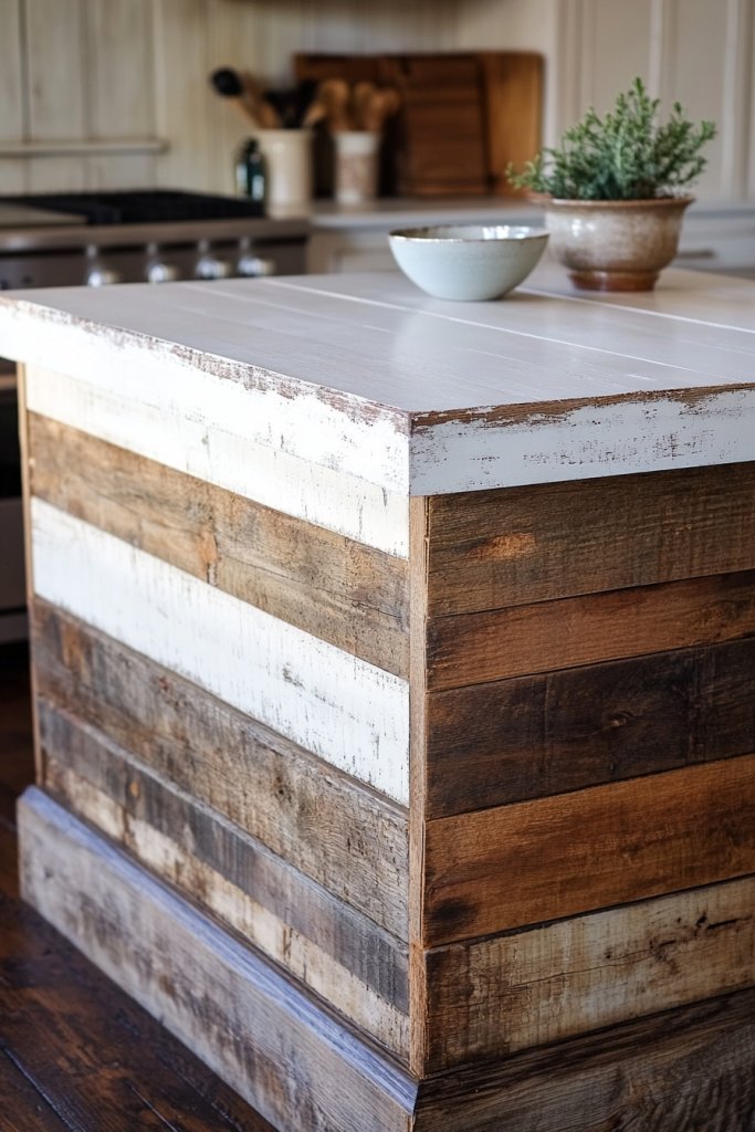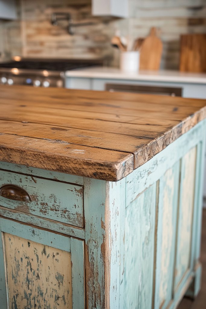 10. Use Distressed Paint Techniques on the Island Base for a Weathered Look