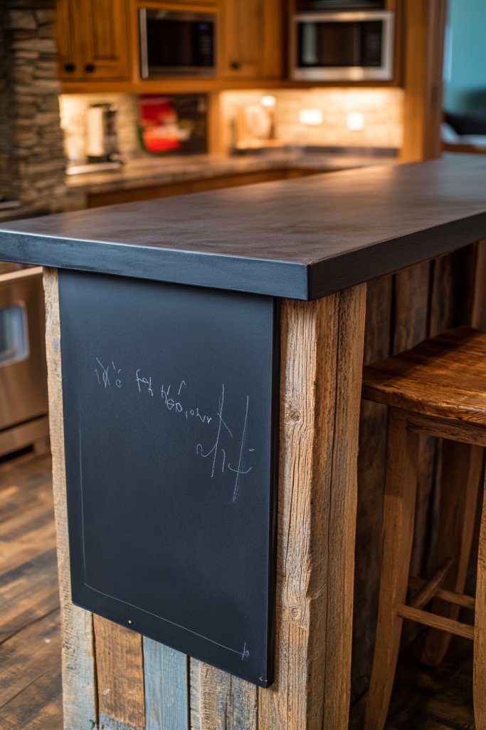 Ever forget your grocery list or want to jot down quick recipes? A chalkboard panel on your rustic island offers a charming, practical solution. The challenge is integrating it without breaking the rustic aesthetic. If you love DIY projects and personal touches, this feature is both fun and functional. It transforms your island into a creative hub for notes, menus, and inspiration.
