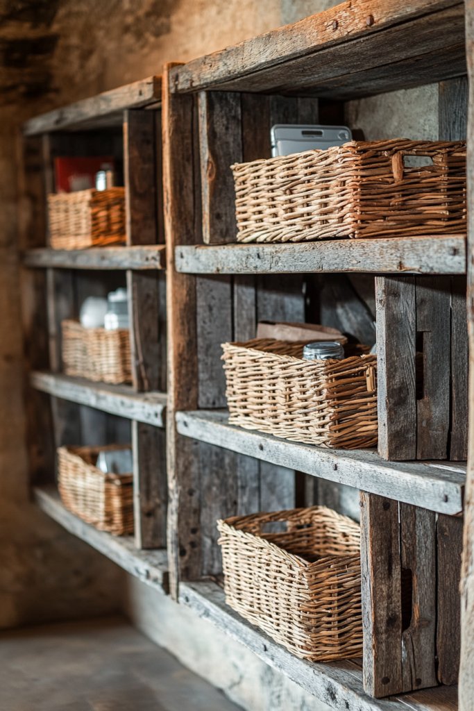 8. Add Woven Baskets or Burlap Liners for Extra Storage and Rustic Texture