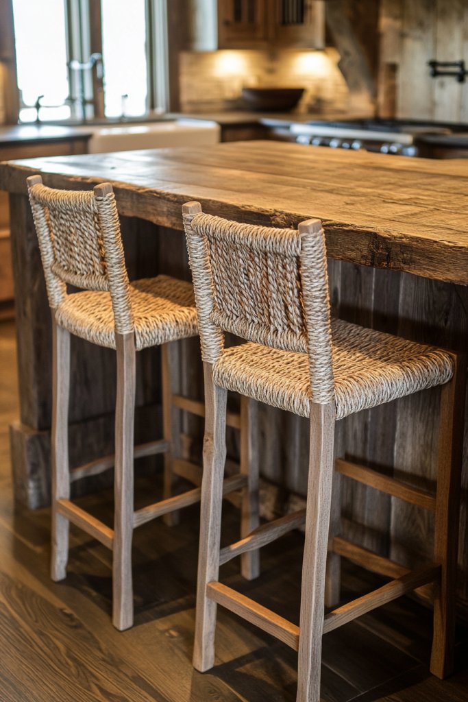 Looking to make your rustic island a welcoming gathering spot? Cozy, woven barstools add comfort and style, inviting family and friends to linger. The challenge is selecting seating that complements rustic decor without feeling bulky or out of place. If you love the idea of casual, comfortable seating with a natural touch, woven stools are the perfect finishing detail. They complete the look and elevate the vibe.