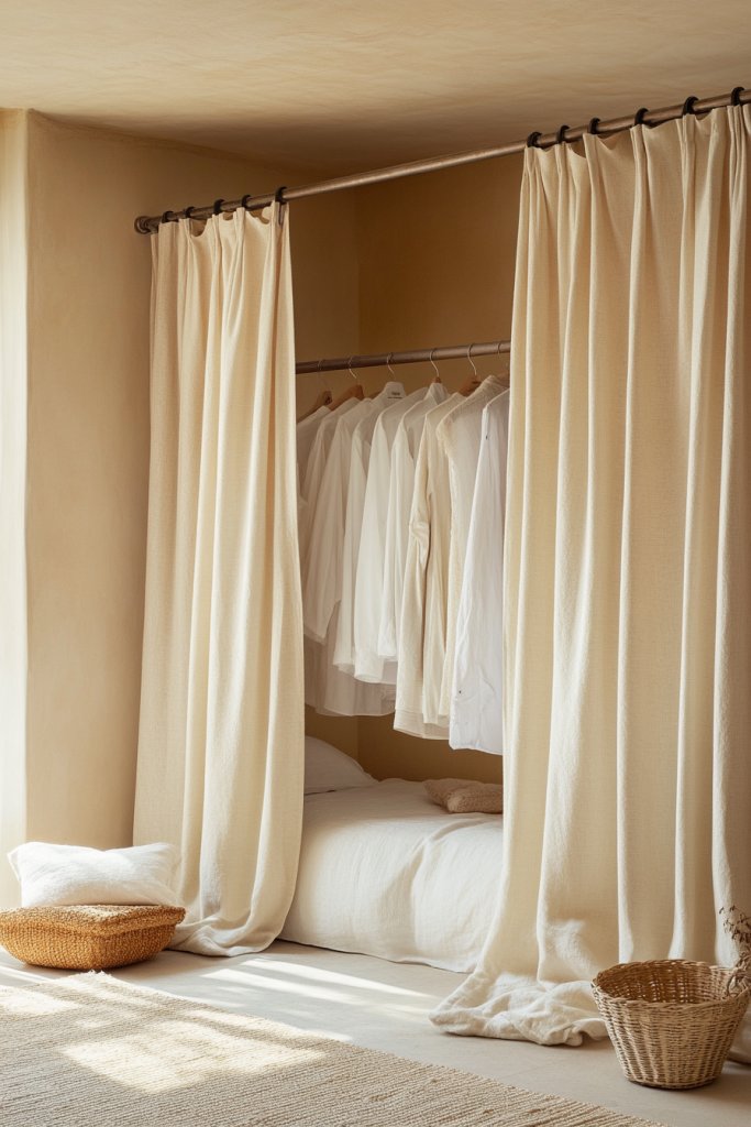 10. Hanging Rod with Fabric Curtains for a Cozy Wardrobe Feel