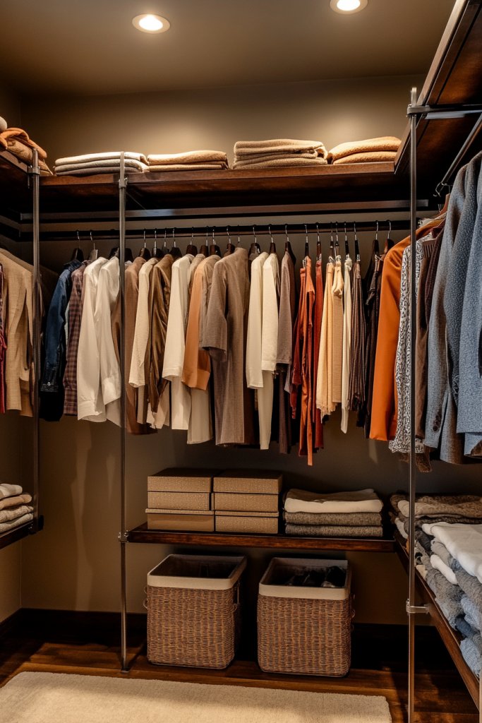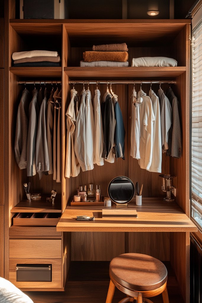 Ever wish your closet could double as a workspace or beauty station? A multi-functional clothing rack with an integrated desk or vanity area combines style and practicality perfectly. It’s ideal for small bedrooms or studio apartments where space is precious. Plus, it turns your daily routine into a more organized, enjoyable experience.