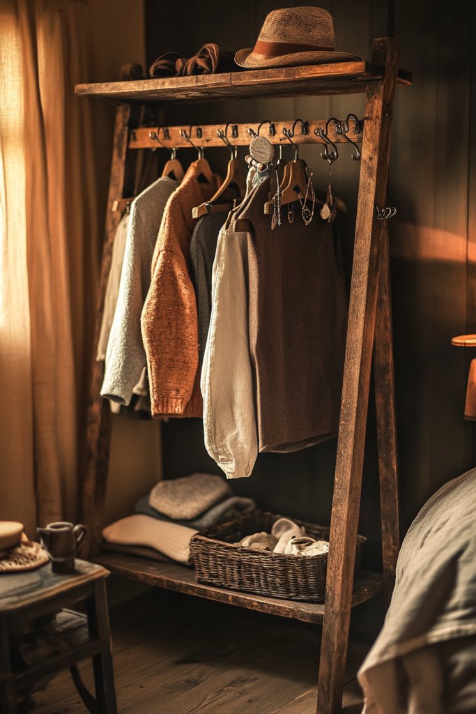 A vintage repurposed rack turns your closet into a statement of creativity and sustainability. It encourages you to see storage as an art form rather than just a necessity. Once you’ve styled it to your taste, you’ll feel more connected and confident in your space. It’s a reminder that beauty can be found in the old and worn.