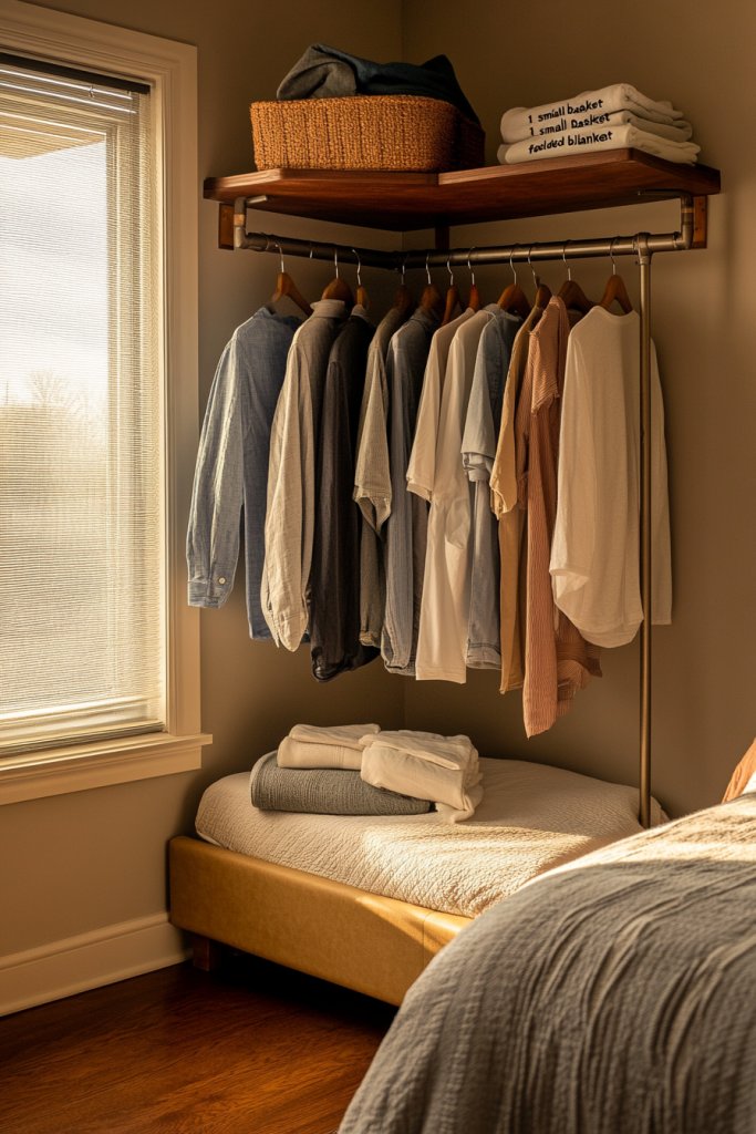 5. Space-Saving Corner Clothing Rack for Small Bedrooms