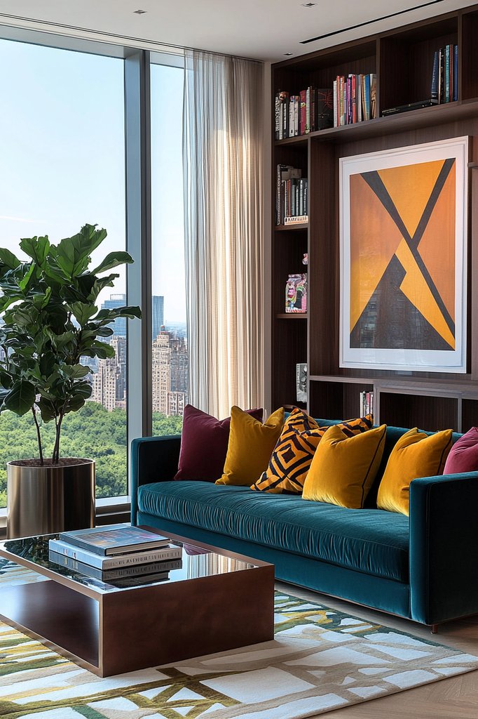Imagine a vibrant velvet sofa in deep emerald or a striking geometric patterned armchair that pulls the eye. These choices not only add color but also texture, creating a dynamic visual experience.