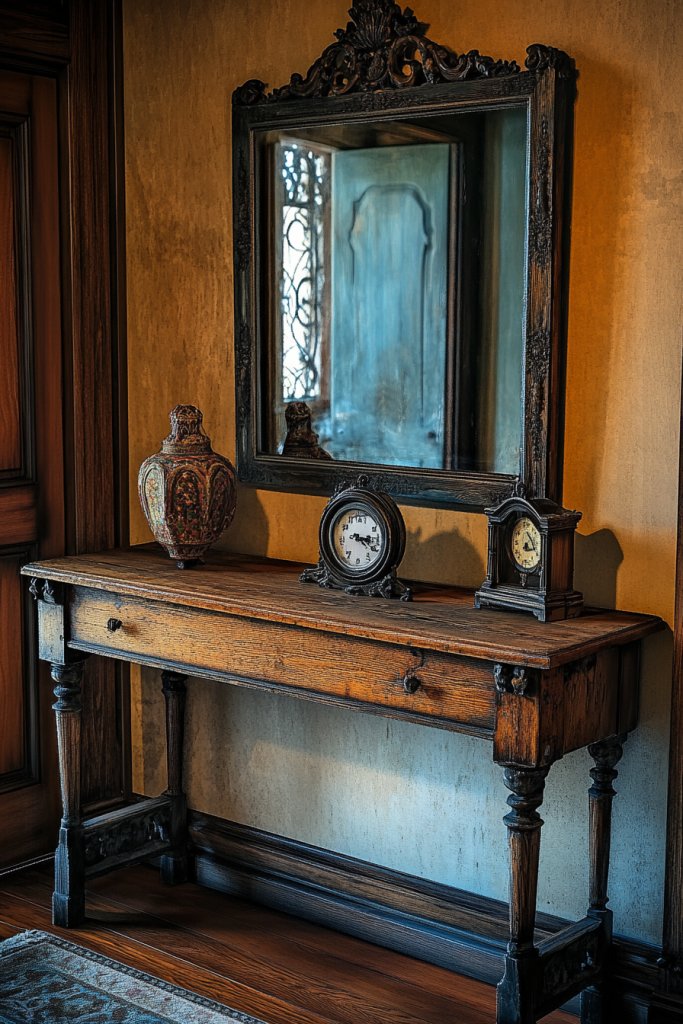Want your entryway to tell a story and exude charm? Antique or vintage decor adds character and a sense of history that can’t be replicated with modern pieces. It creates a warm, inviting ambiance that feels timeless. If you love nostalgic touches, this idea will make your space stand out.