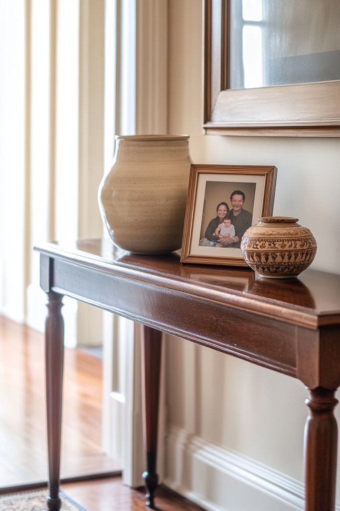 Want your entryway to feel warm and personal instead of impersonal and sterile? Adding family photos or handcrafted items can infuse character and soul into the space. It’s a simple way to showcase your story and create a welcoming vibe. If you crave a home that feels authentic and lived-in, this idea is just what you need.