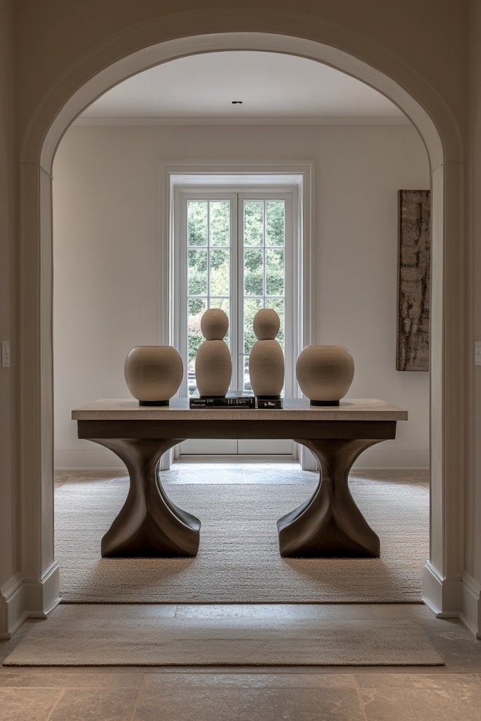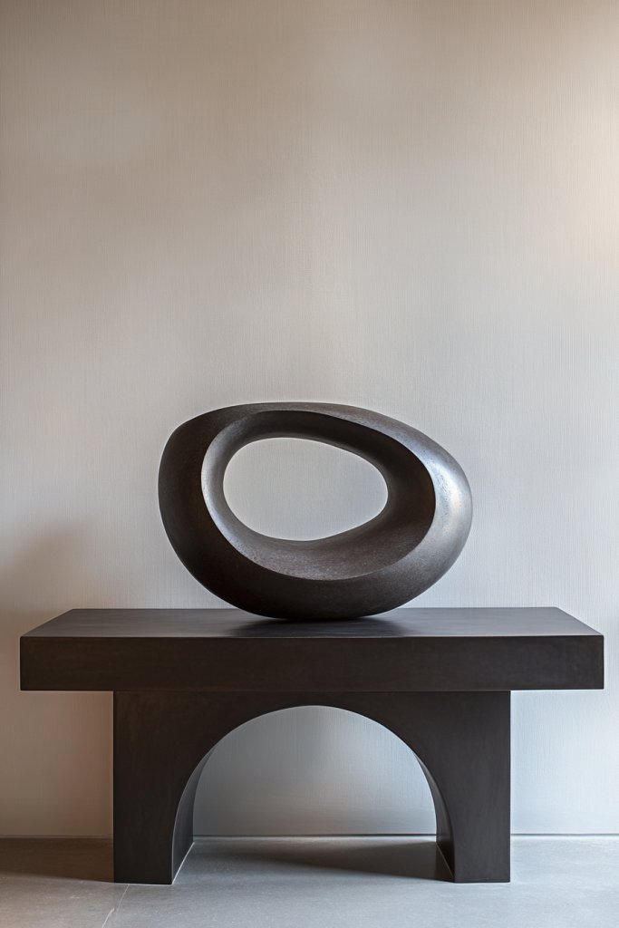 Imagine a bold abstract sculpture in a sleek finish sitting atop your console, catching the light and inviting closer inspection. Alternatively, a striking ceramic or metal piece can serve as an eye-catching centerpiece. Surround the sculpture with minimalist decor—like a textured tray or a few small accents—so it remains the star. The arrangement emphasizes balance and highlights the artistic statement.
