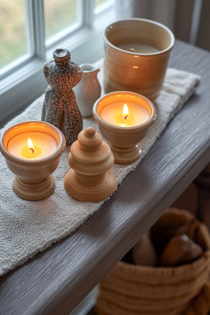 7. Cozy Vignette with Candles and Small Decorative Objects