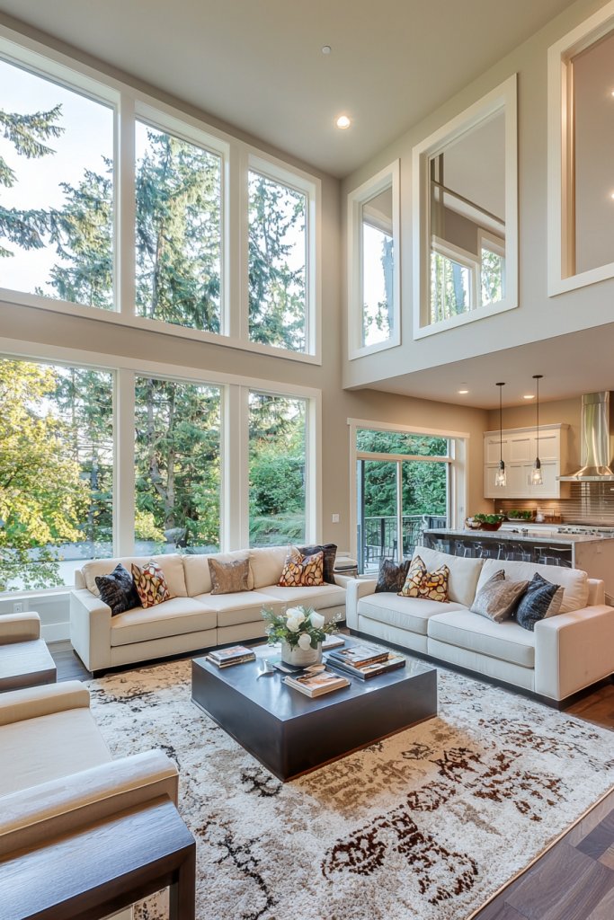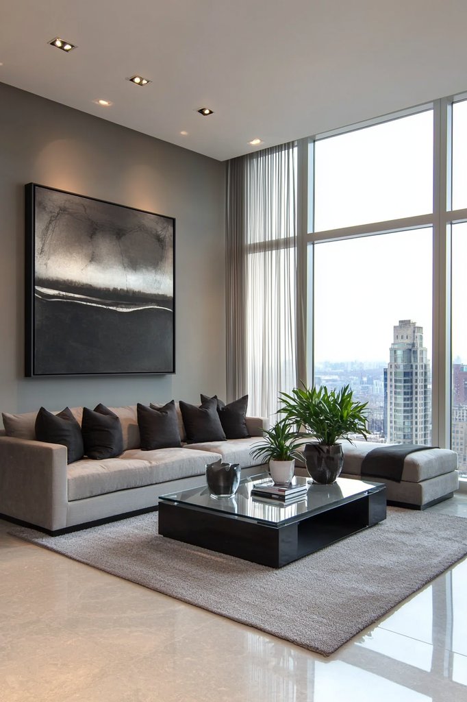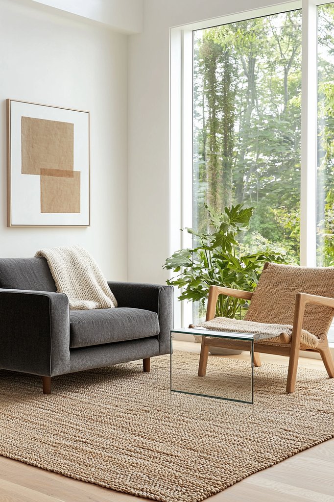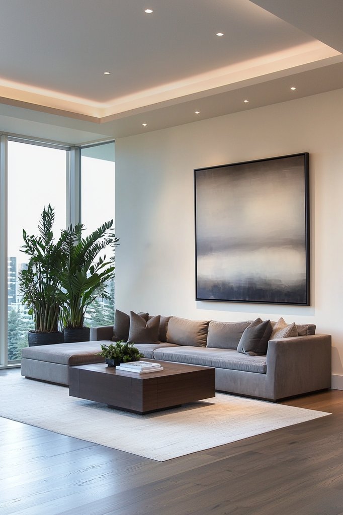 Combine this with stone accents, like a sleek coffee table or a textured fireplace, to introduce a grounded feel. Adding textiles made from organic fibers, such as cotton or linen, can soften the space and create an inviting atmosphere.