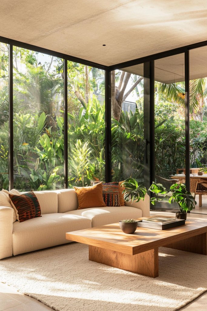 Incorporate lush plants to enhance the natural feel and improve air quality. You might also want to furnish your outdoor area with comfortable seating that complements your indoor style, turning it into an extension of your living room.