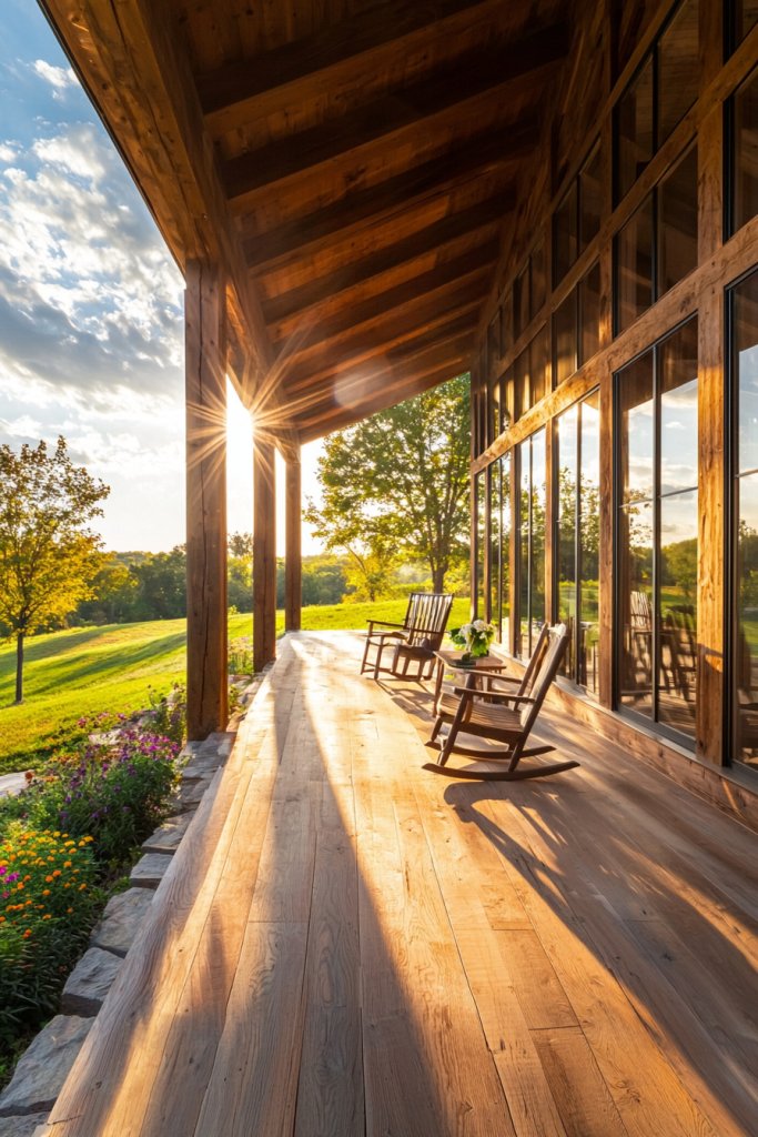 What if you could blend the charming nostalgia of a traditional farmhouse with sleek modern design? Imagine entering a space where rustic wooden beams meet expansive glass windows, flooding the living room with natural light. The warmth of reclaimed wood floors contrasts beautifully with minimalist furniture, creating a cozy yet sophisticated atmosphere.