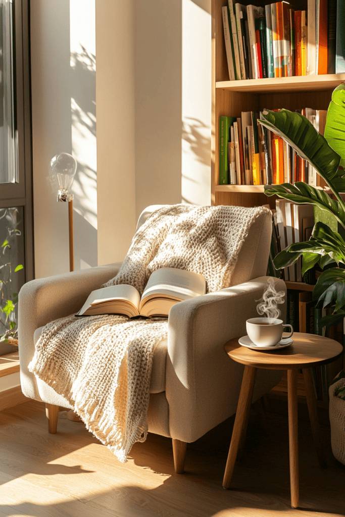 After setting the scene with seasonal decor, it’s time to carve out a personalized space dedicated to relaxation. Picture a cozy nook, perhaps a corner by the window, adorned with plush pillows and a soft throw blanket. A stylish accent chair or a hammock chair invites you to sink in. Layer your space with a small side table for your favorite books and a scented candle, filling the air with calming aromas. Add some greenery; a few low-maintenance plants will breathe life into your corner. Soft lighting from fairy lights or a warm-toned lamp creates an inviting glow. This is your sanctuary—a place where you can unwind, recharge, and escape the hustle and bustle of daily life.