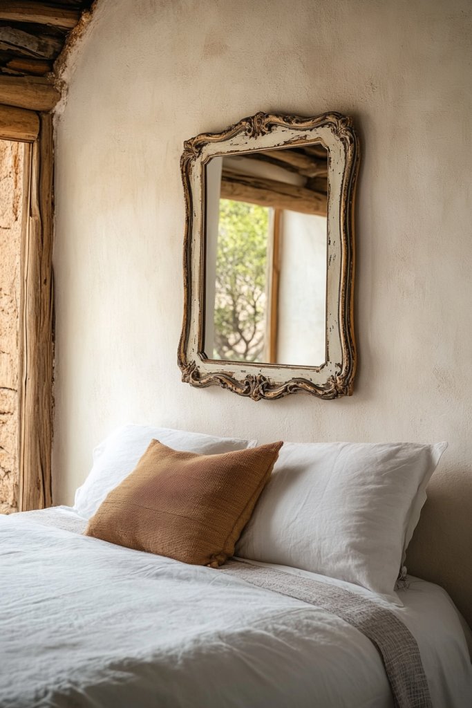 Opt for different shapes—round, oval, or even irregularly shaped—to suit your style. Choose frames made of distressed wood, metal with a patina, or painted finishes for a personalized touch. Hang the mirror with decorative ropes or leather straps for a boho look, or keep it simple with a sleek mounting system. Layer with other wall decor or textiles for a curated, eclectic vibe. Seasonal updates can include changing the framing or adding small decorative elements around it.
