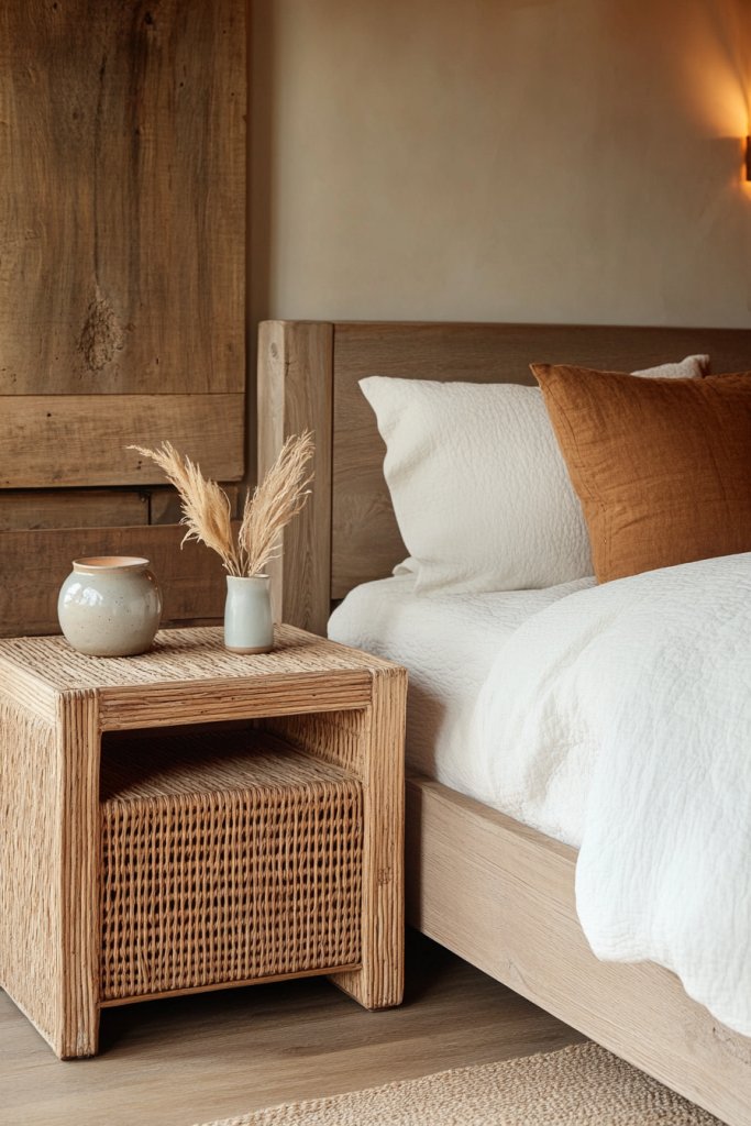 2. Rattan or Wicker Nightstands for Natural Warmth