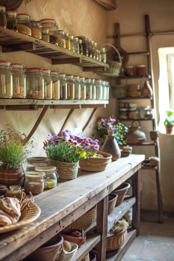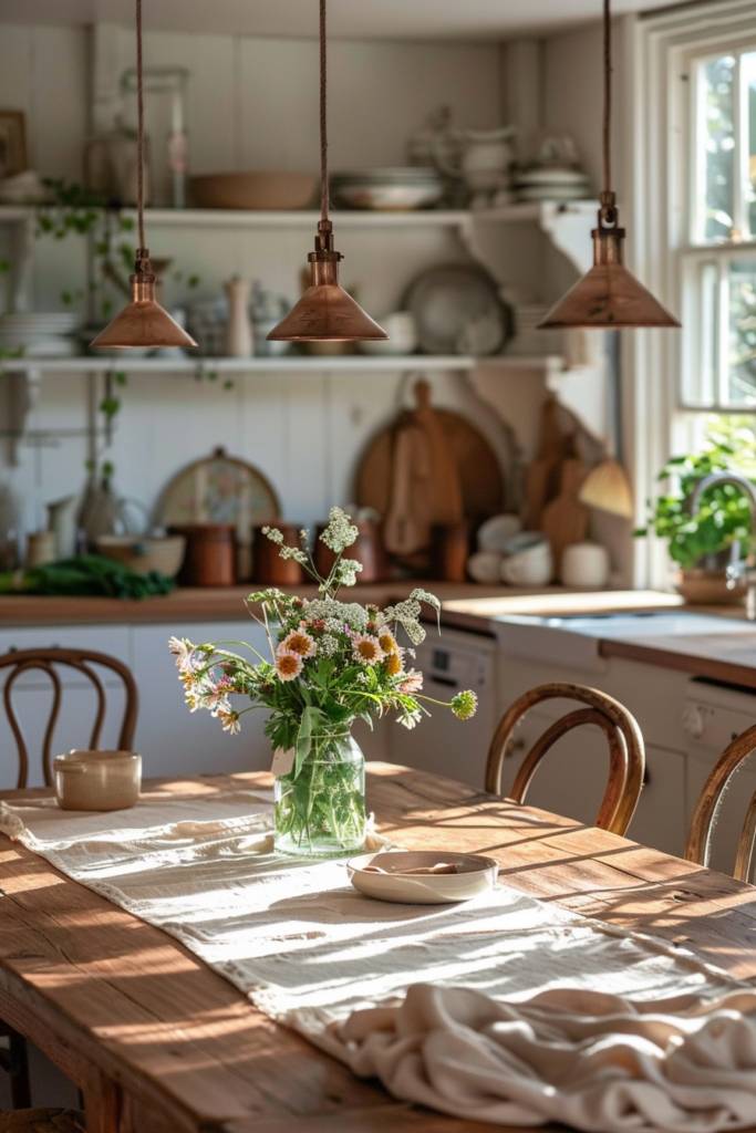 Consider wooden accents, like a handcrafted cutting board or rustic wooden spoons, to create a cozy, welcoming vibe. Natural fibers, such as linen or jute, can enhance your kitchen textiles, from dish towels to table runners. You might even want to display some dried flowers in a clay vase, capturing the essence of nature indoors.