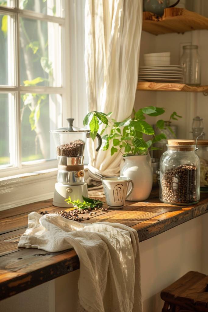Next, incorporate an array of your favorite coffee beans and tea selections in decorative jars, showcasing them as art. Don’t forget a milk frother or a cozy mug collection; both can elevate your morning ritual.