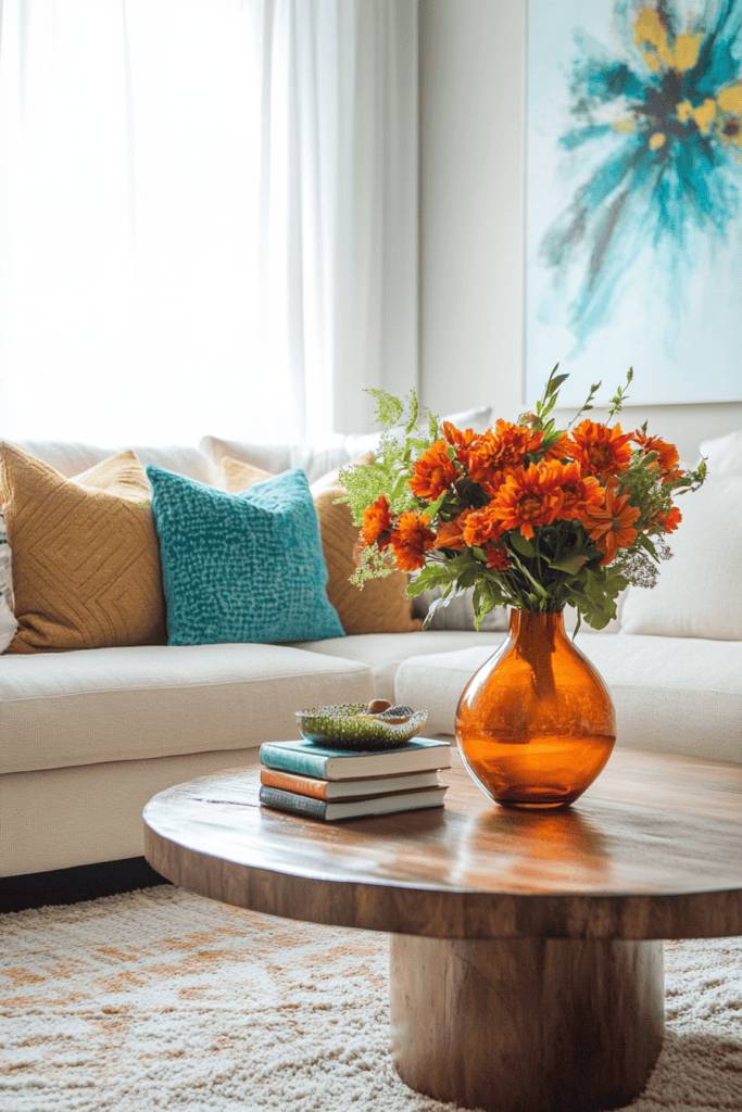 Introduce pops of color through cushions, throws, or artwork. A bold emerald green pillow or a sunny yellow throw can instantly enliven the room. You might even consider a statement piece, like a colorful rug, to anchor the space and add depth.