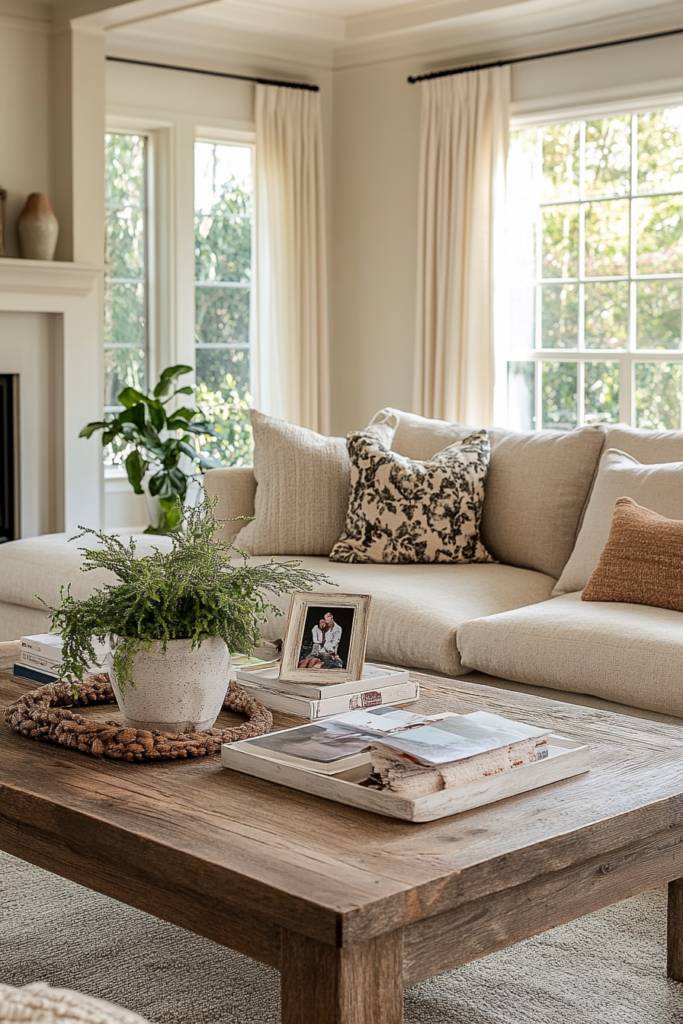 To enhance the cozy vibe in your living room, adding a coffee table can work wonders. It serves as a central hub for conversation, inviting friends and family to gather around. Think about a table that complements your style—whether it’s a rustic wood piece for a farmhouse feel or a sleek glass design for a modern touch.