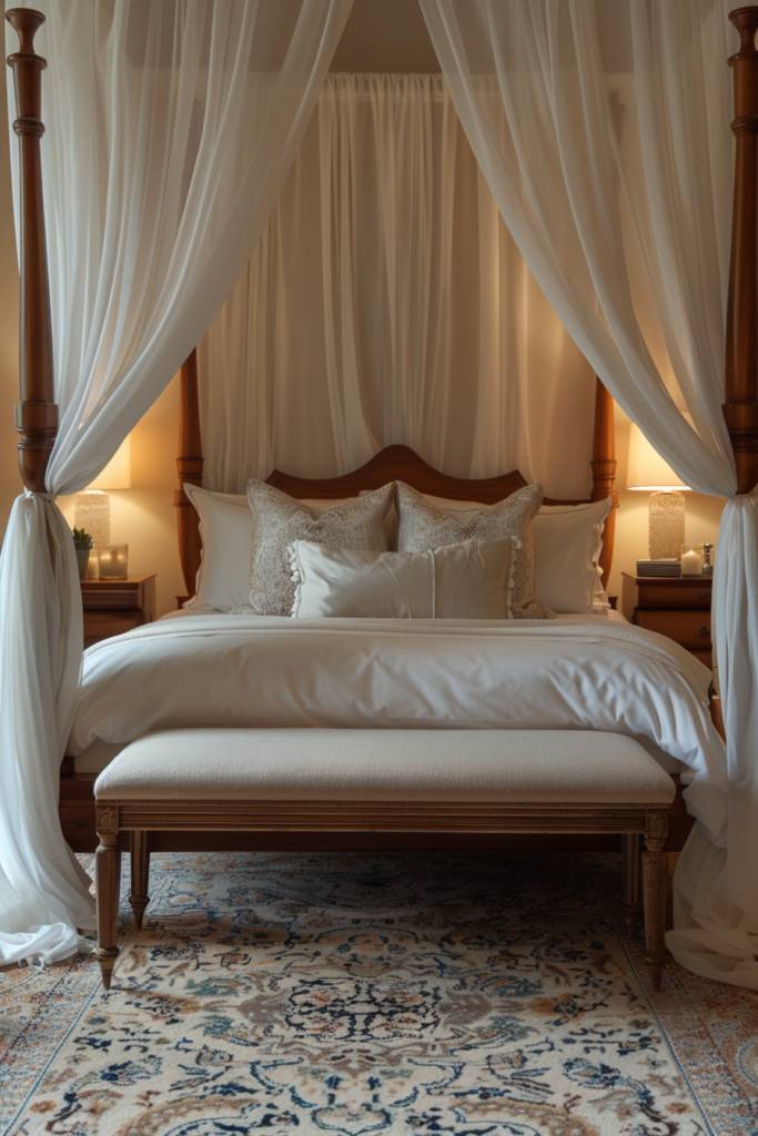 Don’t forget about lighting; a soft, warm glow from within the canopy can transform your space into an inviting sanctuary. Embrace the canopy effect, and you’ll find yourself enthusiastic about retreating to your cozy bedroom oasis each day.