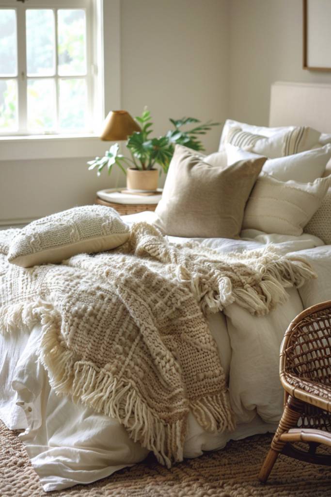 Choose colors that harmonize with your existing decor—soft neutrals for a serene vibe or bold hues for a pop of personality. Layering different textures creates depth and visual interest, making your bedroom feel more inviting.