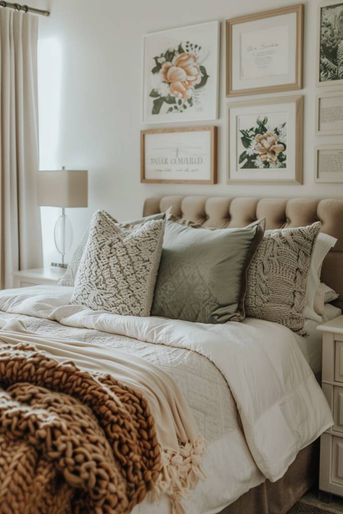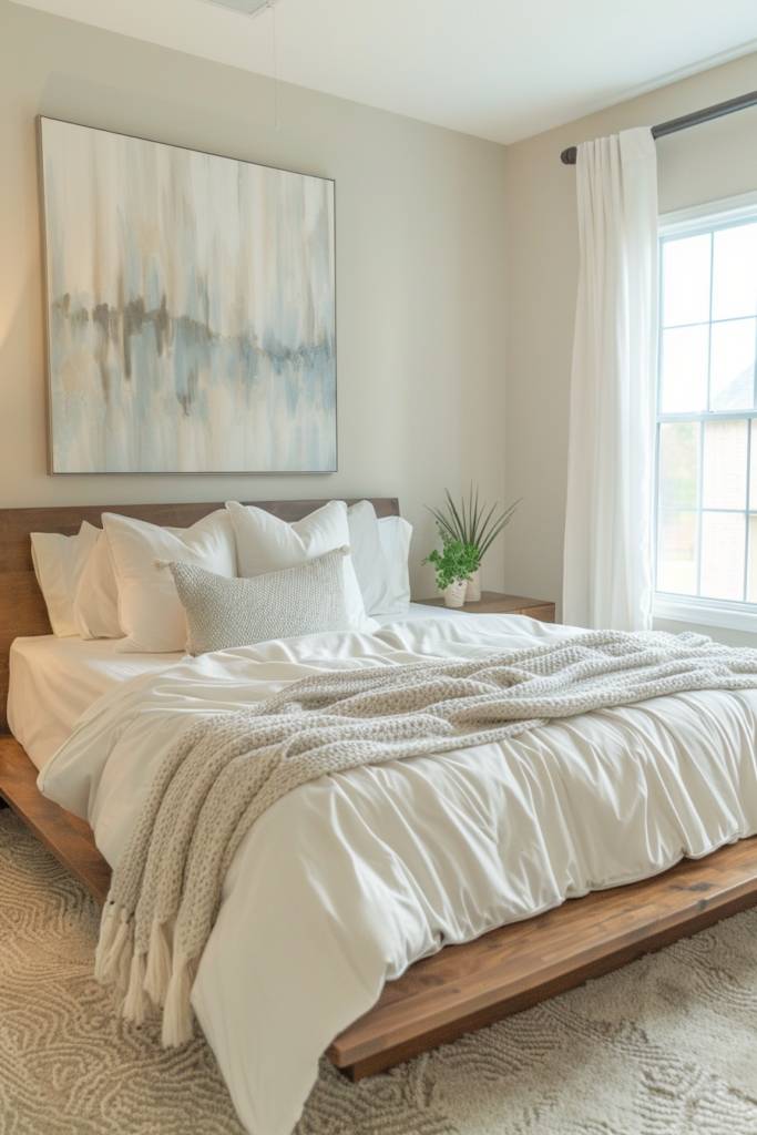 Consider creating a gallery wall that showcases your favorite artworks, mixing various frames and sizes for a dynamic look. If you prefer a minimalist vibe, a single large piece above the bed can serve as a stunning focal point.