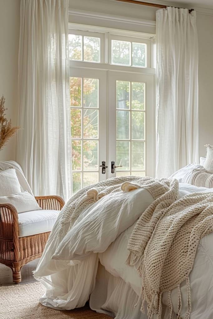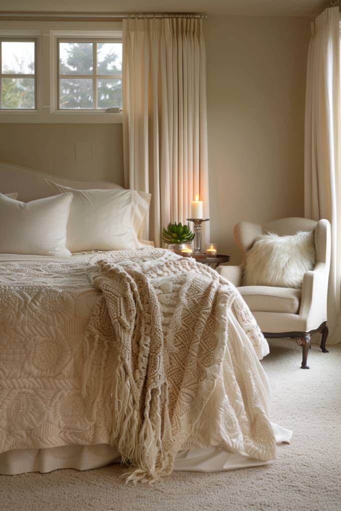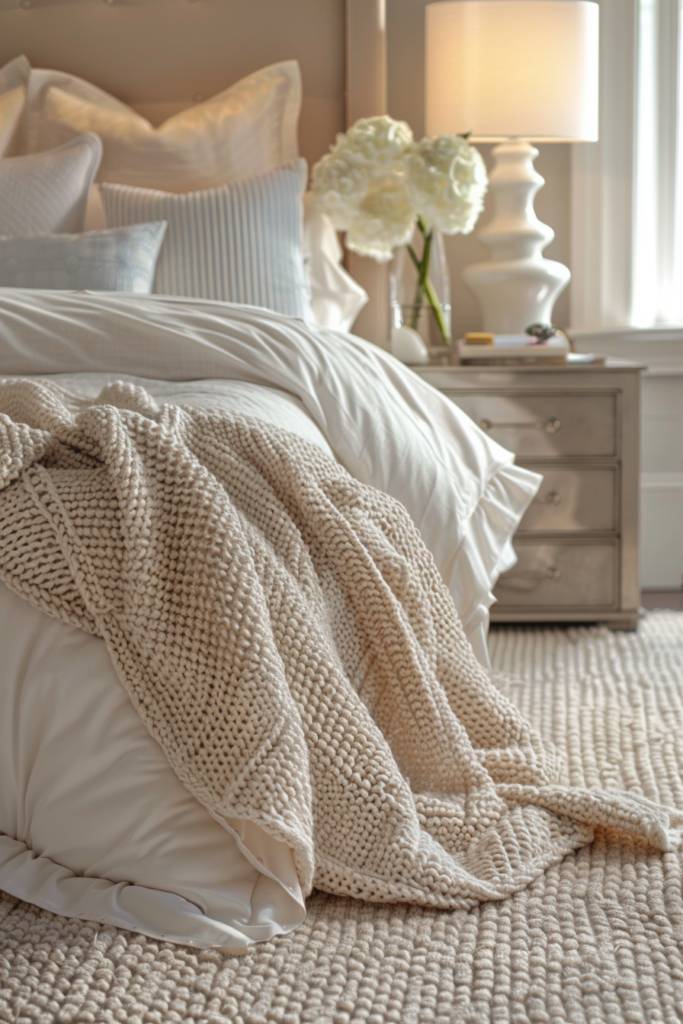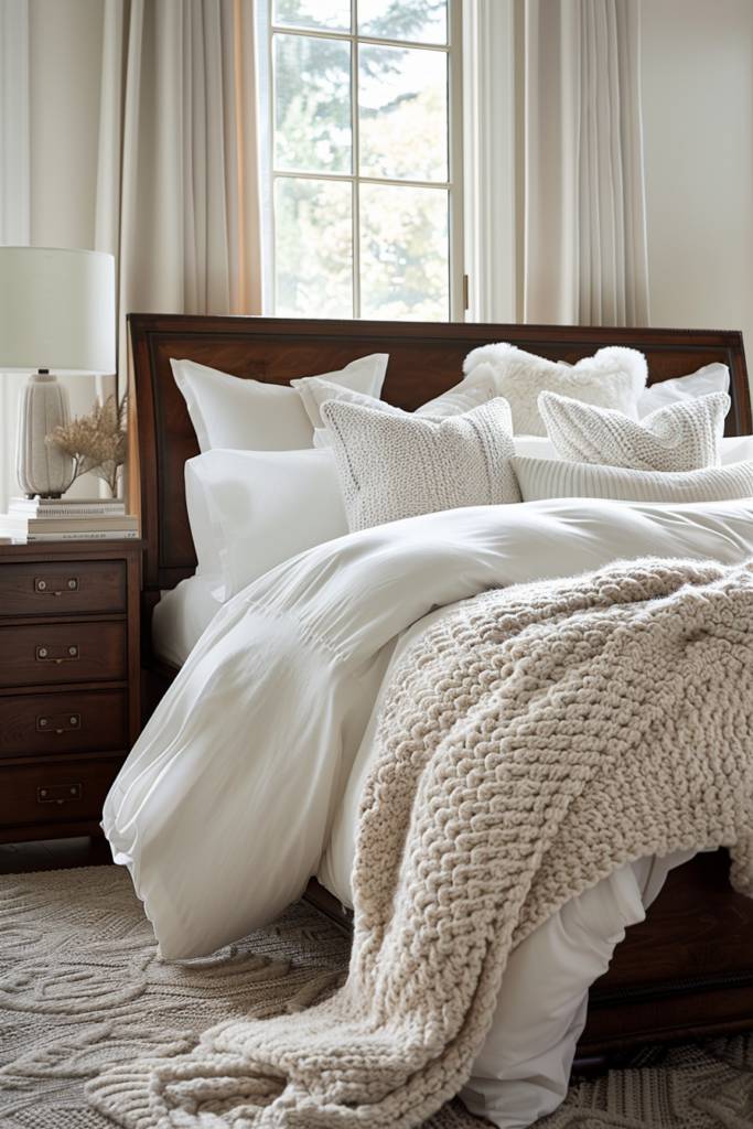 A beautifully draped soft throw blanket can instantly transform your master bedroom into a cozy haven. Imagine this: a luxurious, textured blanket tossed over the edge of your bed, inviting you to curl up after a long day. Opt for fabrics like chunky knit or faux fur, which not only add warmth but also elevate your space’s aesthetic.