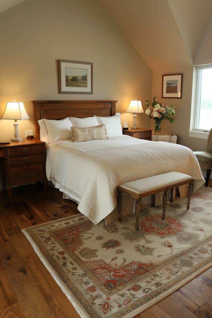 Don’t forget about size! A rug that extends beyond your nightstands or the foot of your bed can tie the room together, making it feel more inviting. With the right cozy rug, you’ll enhance your master bedroom’s comfort and style, perfect for relaxation and restful nights.