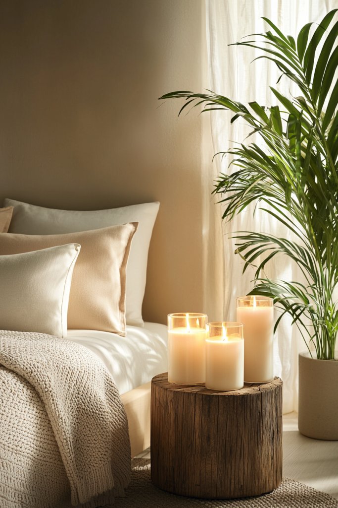 Choose candles that complement your decor—think chic glass holders or rustic wooden designs that blend seamlessly with your style. Place them on your nightstand, dresser, or even in a curated corner, creating mini displays that spark joy.