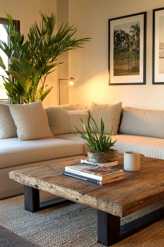 Start with natural materials like wood and stone; a reclaimed wood coffee table or slate coasters can add warmth. Greenery is essential, too—consider incorporating potted plants or a small herb garden on a windowsill.