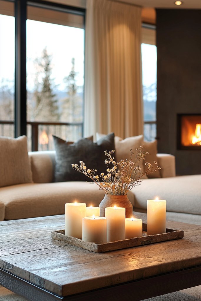 You don’t need a lot of candles—just a few strategically placed on tables or shelves can do wonders. Consider using a variety of sizes and heights to add visual interest.
