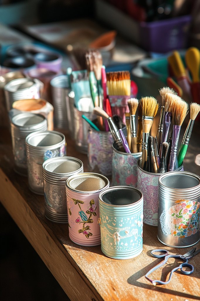10. Repurposed Tin Cans as Paintbrush or Tool Holders