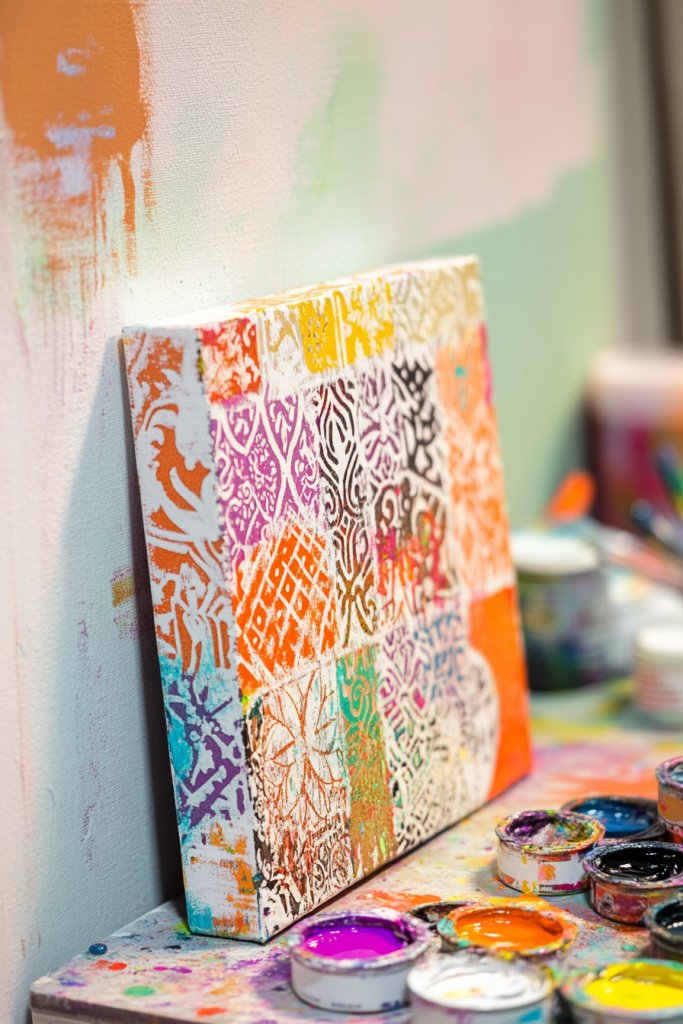 11. DIY Canvas Art with Stencils and Acrylics