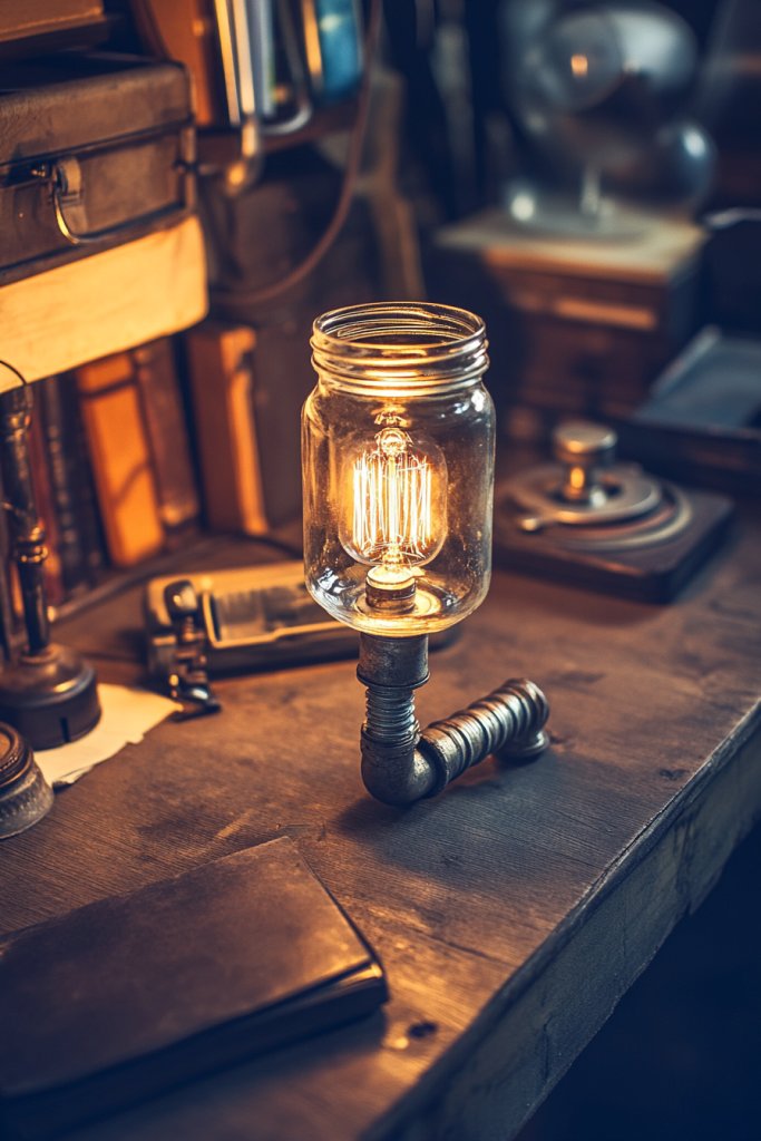 Use different recycled items—mason jars, teapots, or tin cans—as the lampshade. Add LED string lights, battery-operated candles, or small bulbs for illumination. Decorate bases with paint, fabric, or decorative tape to match your style. Opt for adjustable or portable designs to suit your needs. This approach suits any space, big or small.