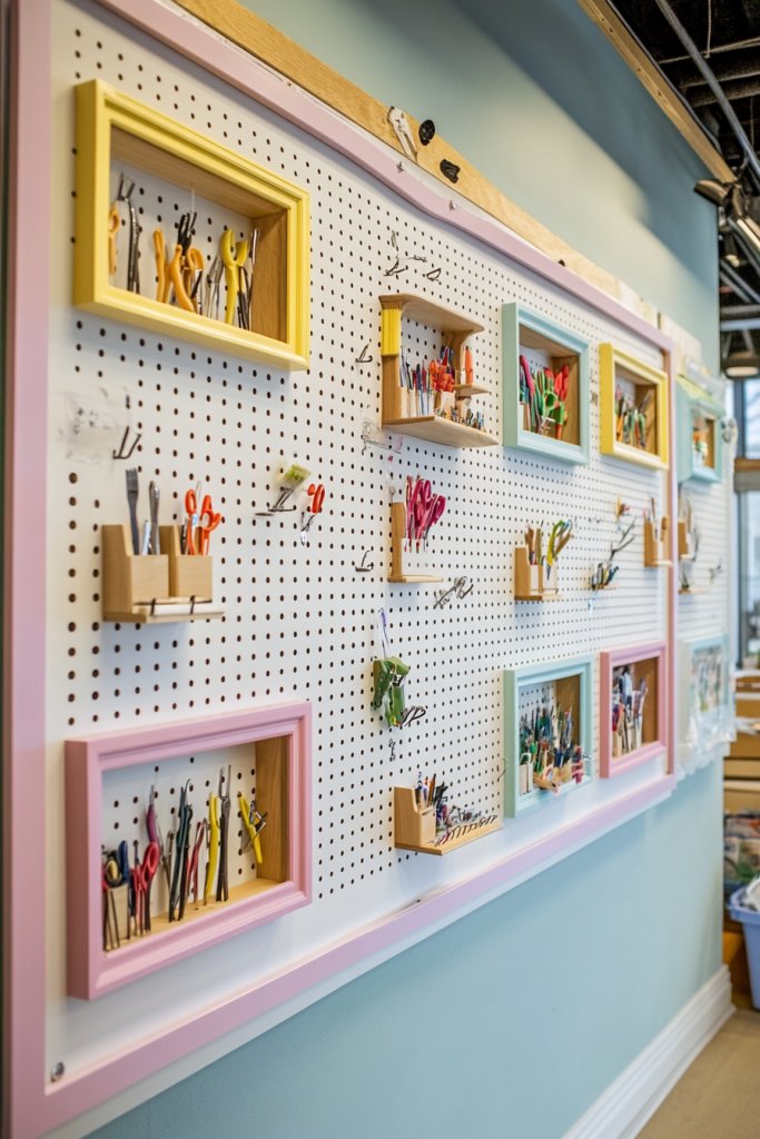 2. DIY Pegboard Wall Organizer with Painted Frames