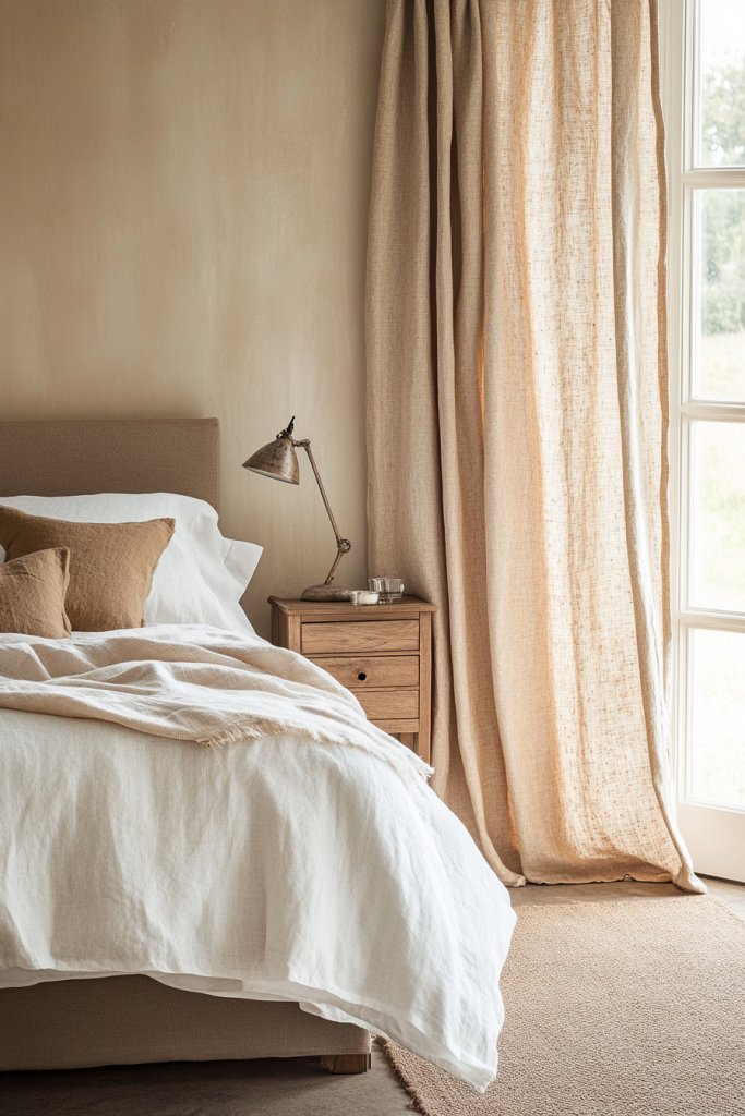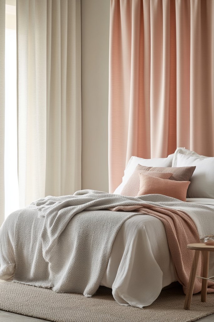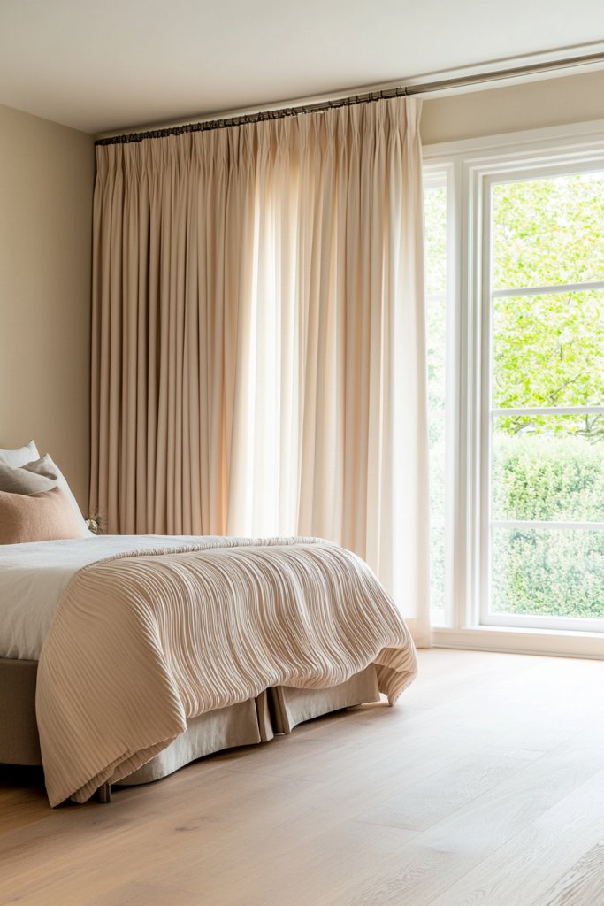 17. Soft-Toned Curtains with Subtle Texture Weaves