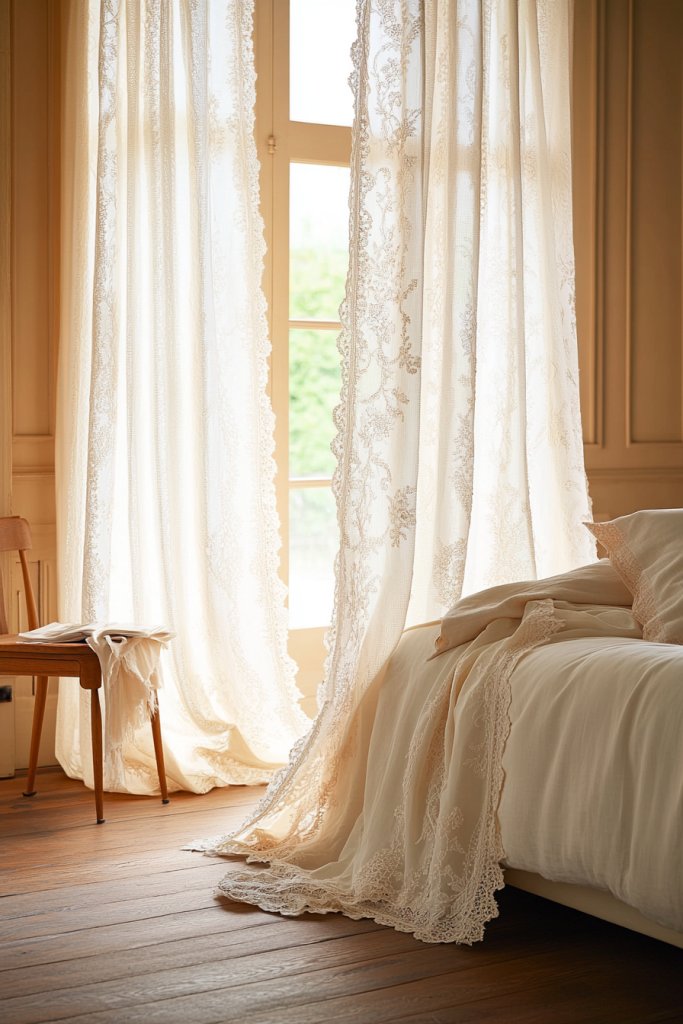 13. Embroidered or Lace Curtains for Vintage Softness