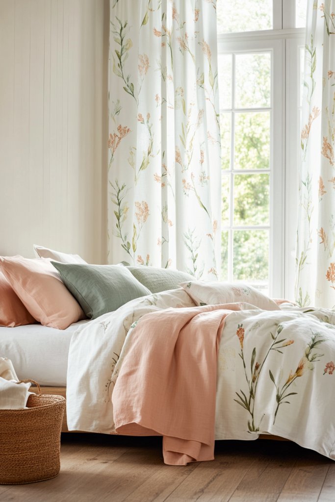 Craving a bedroom that feels fresh, natural, and calming? Botanical prints in soft colors can bring a touch of nature indoors, creating a peaceful oasis. They add a gentle pop of color while maintaining a soft, elegant vibe. If you love subtle patterns inspired by the outdoors, this idea is perfect for you.