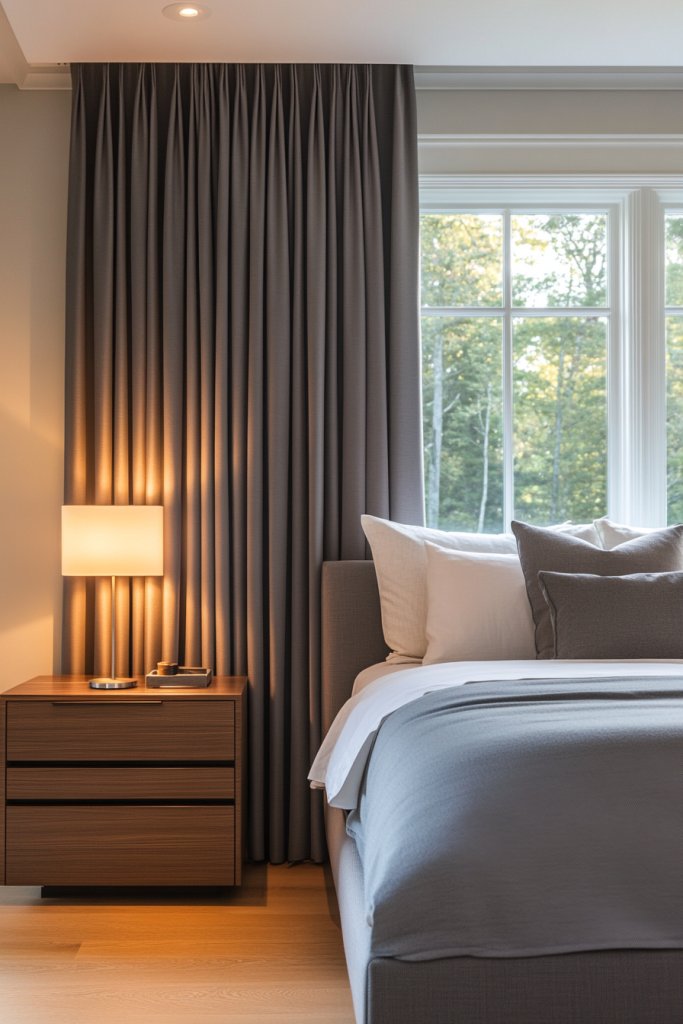 Struggling with wake-up sunlight or noisy streets? Blackout curtains in soft shades offer privacy and darkness while maintaining a calm, understated look. They’re perfect for light-sensitive sleepers or anyone wanting a more peaceful retreat. If you crave serenity without sacrificing style, this idea hits the spot.