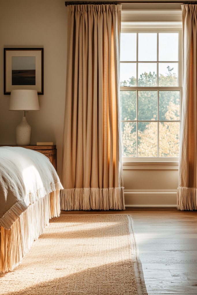 8. Fringe-Trimmed Curtains for Subtle Glamour