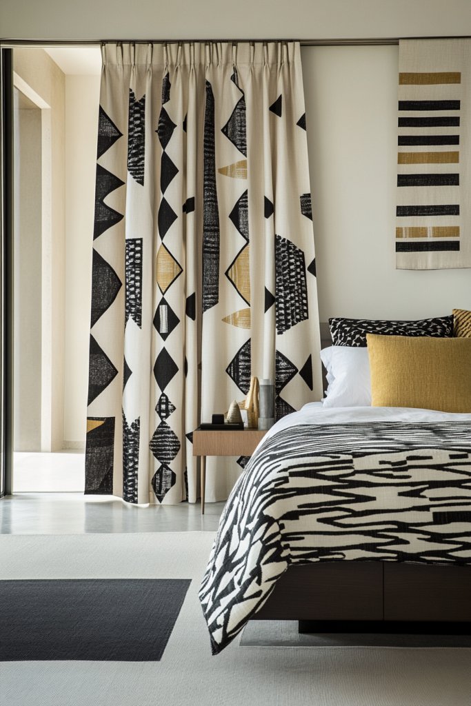 10. Geometric Patterned Drapery for a Contemporary Edge