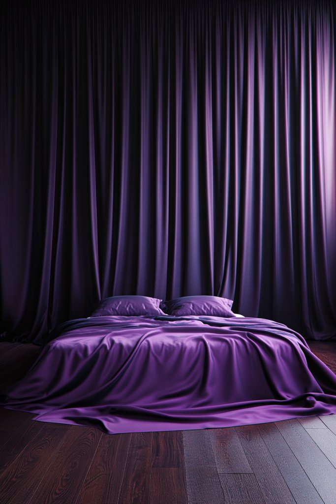 Imagine heavy, velvety curtains in deep, vibrant colors that block out the sun during the day. The fabric’s thickness and lining ensure complete darkness, while the rich tones add a touch of luxury and sophistication. When closed, they create a cocoon-like environment, perfect for sleep or movie nights. When pulled back, they reveal a bold pop of color that energizes your space, making your bedroom feel both functional and glamorous.