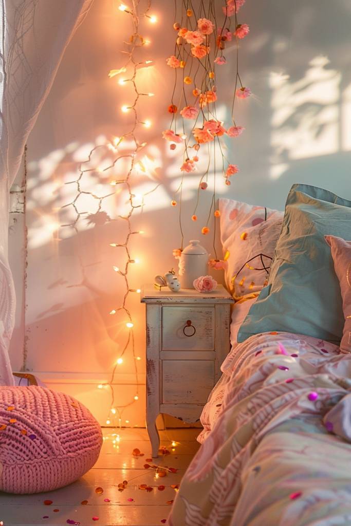 Brighten up your space with colorful wall art and quirky wall decals that showcase your unique style. Whimsical throw pillows and fun area rugs instantly add comfort and charm to your cozy corners. Don’t forget playful string lights to create a warm ambiance and cheerful banners for a splash of personality. With charming nightstands and whimsical door mats, you can transform every inch of your room. There’s even more delight to discover in these 25 cute decor ideas!