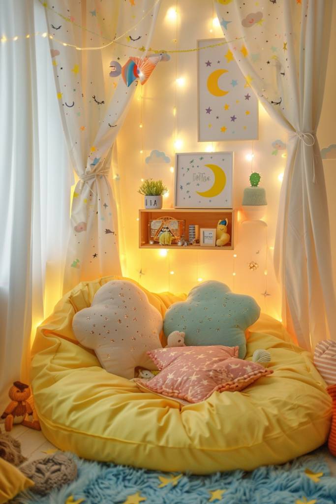 Imagine a cozy reading nook adorned with a whimsical tree, its branches extending towards the ceiling, inviting you to dream. Or perhaps a playful galaxy theme that inspires your little one’s imagination as they drift off to sleep.
