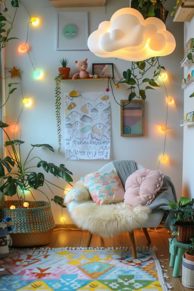 After infusing your walls with playful banners, it’s time to shed some light on another key element of room decor: creative lighting fixtures. These unique pieces can transform your space, adding both charm and functionality. Imagine a whimsical pendant light shaped like a hot air balloon, casting soft, dreamy shadows on your walls. Or consider string lights draped elegantly across a bookshelf, creating a cozy reading nook that beckons you to unwind.