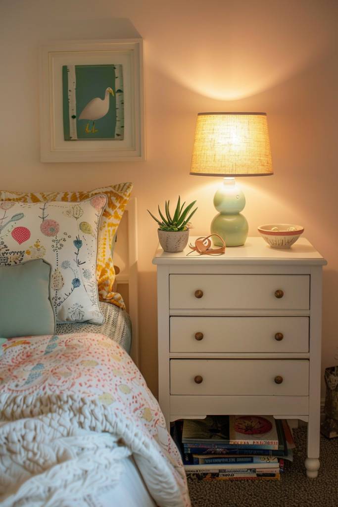 Accessorizing your nightstand is where the magic happens. A small potted plant or a delicate vase filled with fresh flowers breathes life into the space. Don’t forget a stack of your favorite books, inviting you to unwind before bedtime. With just a few personal touches, your nightstand can tell a story—reflecting your style and charm. So go ahead, explore different styles and let your nightstand become a delightful focal point in your sanctuary, blending functionality with playful elegance.
