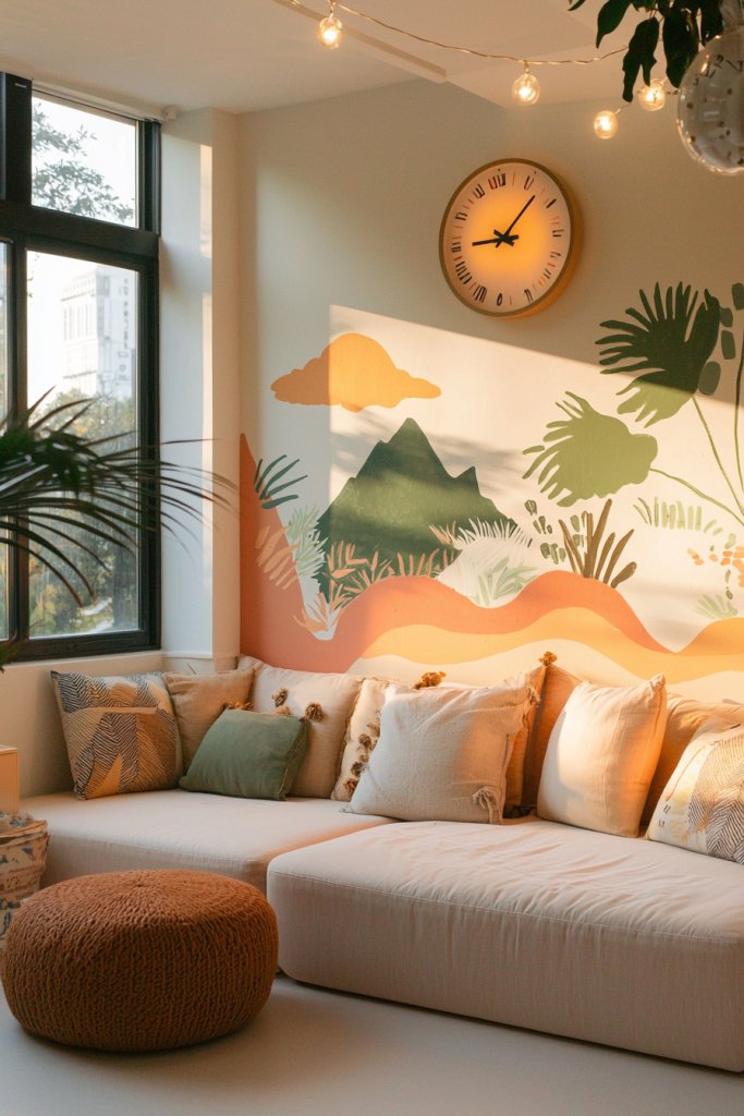 Think bold lines and vibrant colors that energize your walls and create visual interest. Next, whimsical florals can add a touch of playfulness, perfect for a cozy nook or a child’s bedroom.