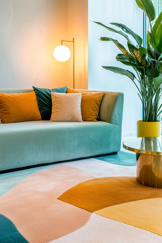 Bright hues like teal, yellow, or coral can anchor your furniture while adding depth and personality. Layering different textures, such as a plush shag over a flatweave, not only enhances comfort but also creates visual interest.