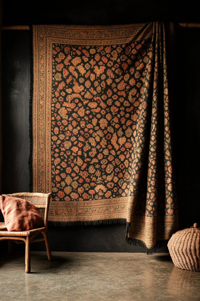 Opt for traditional woven wall hangings, wool rugs hung vertically, or embroidered textile art. Use ornate wooden rods or vintage hooks to display them. Change the textiles seasonally—heavier wool for winter, lighter fabrics for summer—to keep your decor feeling fresh. Layering smaller pieces can add visual complexity.