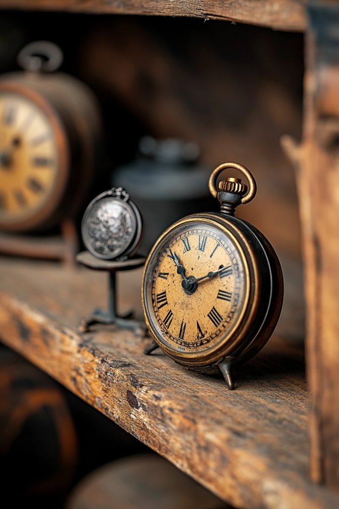 Choose from standing clocks, pocket watches, or small tabletop pieces. Incorporate them into shelves, desks, or wall displays. Seasonal updates might include adding vintage stands or velvet pouches to highlight the pieces. Coordinate with other vintage accessories like letter openers or ink pots for a cohesive look.